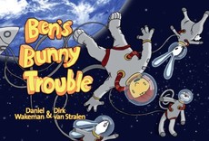 Bunnies in space; a wordless picture book. Ben's Bunny Trouble is set in a near future in which the world has lost all its green space. When Ben decides that the city is not the best place for his bunnies, he embarks on an out-of-this-world journey to find them a better home. It takes a few false landings and help from a variety of aliens, but in the end, Ben finds his bunnies—which seem to have multiplied—a new place to live.
